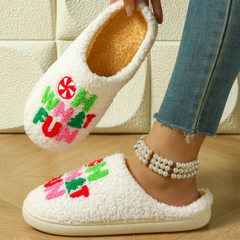 รองเท้าใส่ในบ้านของผู้หญิงลายต้นคริสต์มาสซานตาคลอสสำหรับฤดูหนาว