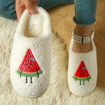 Sonbahar kış kapalı noel pamuk terlik Odorous kaymaz düz ayakkabı kapalı ayak kürk tarzı yumuşak TPR taban için